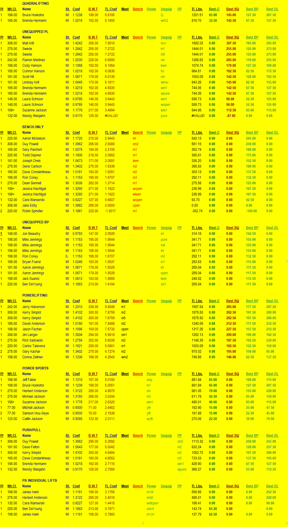 2008 NASA - Wisconsin Regional Meet Results