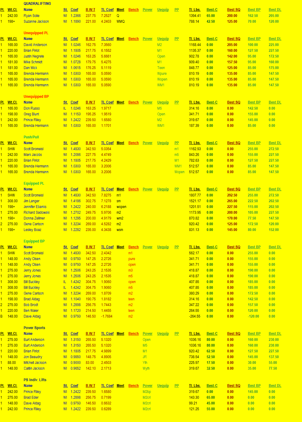 2009 NASA - Wisconsin Regional Meet Results
