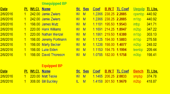 2016 Wisconsin Bench Only Results