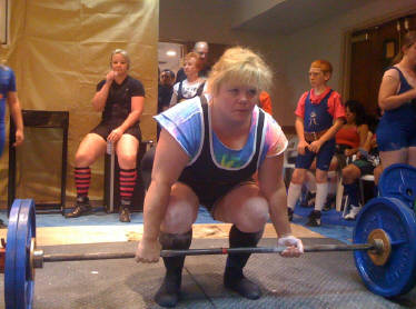 , with a Strict Curl of 71 Lbs., a Benchpress of 121 Lbs., and a Deadlift of 238 Lbs., combining for a Power Sports Total of 424 Lbs. Hou-Seye set 8 State Records, lifting in her first Meet since 2006. Wendy was successful on all 10 of her attempts.
