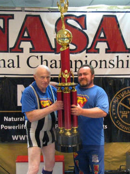 Peter Jensen(Sheboygan), 80, took 1st Place in the 198 Masters 4(70+) Power Sports Division, and the 198 M4 Unequipped Powerlifting Division. Jensen was successful on 12 out of 14 attempts, including a 99 Lbs. Strict Curl, a 220 Lbs. Squat, a 182 Lbs. Benchpress, and a 325 Lbs. Deadlift, which combined for a Power Sports Total of 606 Lbs., and a Powerlifting Total of 727 Lbs. Peter lifted at a bodyweight of 194.8 Lbs., and his 220 Lbs. Squat is a new World Record. Jensen was named the Overall Athlete of the World Cup for Day number 1.